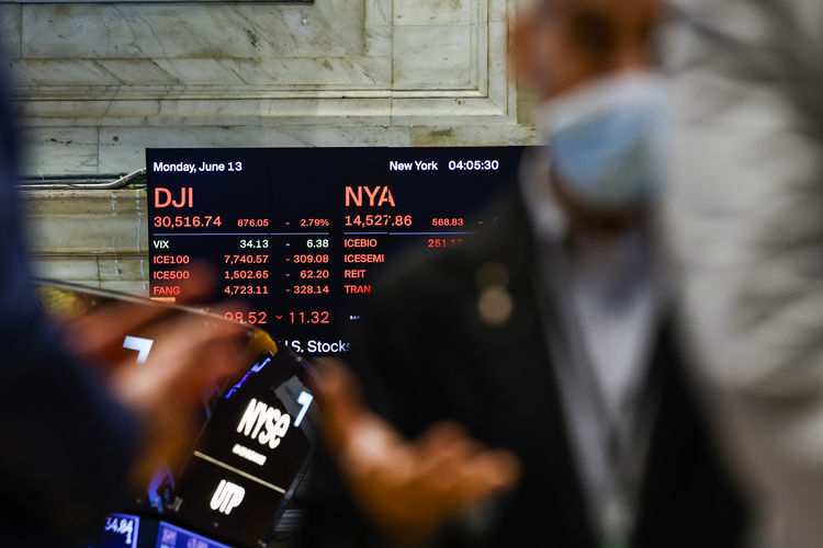 13일(미 동부시간) 뉴욕증권거래소(NYSE)에서 다우존스30산업평균지수는 전장보다 876.05포인트(2.79%) 하락한 30,516.74로 장을 마쳤다.