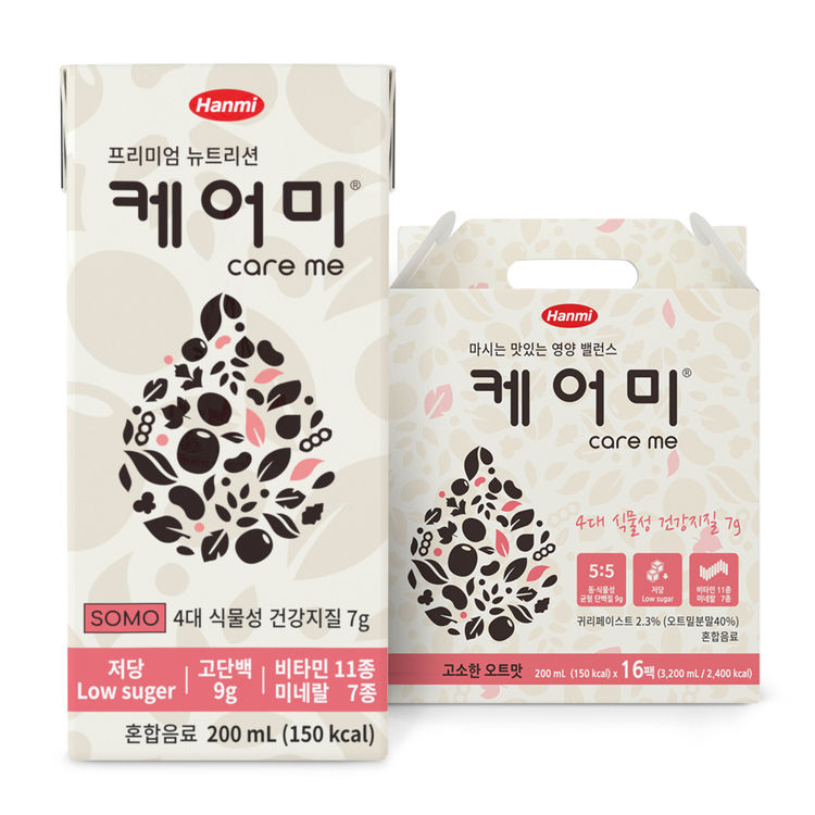 또 한미헬스케어는 축적된 자체 기술을 통해 케어미에 카제인과 유청, 대두 등 동∙식물성 단백질을 5:5 비율로 배합해 첨가했다. 또한 건강하게 단맛을 낼 수 있는 천연 귀리와 단호박을 통한 저당 설계로 현대인들의 과다한 당 섭취 우려를 줄였다.