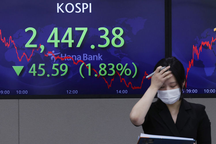 코스피가 종가 기준 2440선으로 내려간 것은 2020년 11월 9일 이후 1년 7개월 만이다.