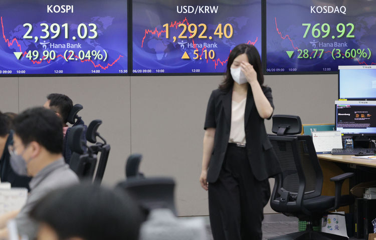 【 청년일보 】 코스피가 외국인의 매도세에 2,400선이 붕괴되며 연저점을 경신했다. 코스피가 종가 기준 2,400선이 붕괴된 건 2020년 11월 4일의 2,357.35 이후 1년 7개여월여 만이다.