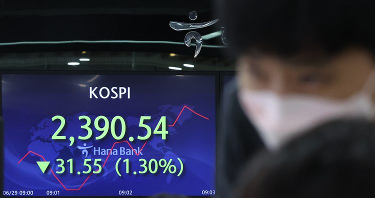 【 청년일보 】 코스피가 장 초반 1% 이상 하락하며 장중 2,400선 아래로 내려갔다.