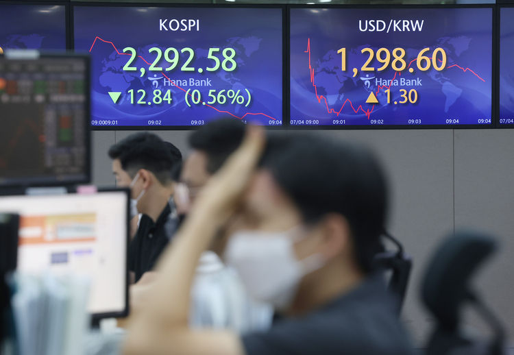 개장 직후 2,288.92까지 밀려 전 거래일 기록한 장중 연저점(2,291.49)을 새로 쓰기도 했다. 이는 2020년 11월 2일(2,267.95) 이후 장중 최저치다.