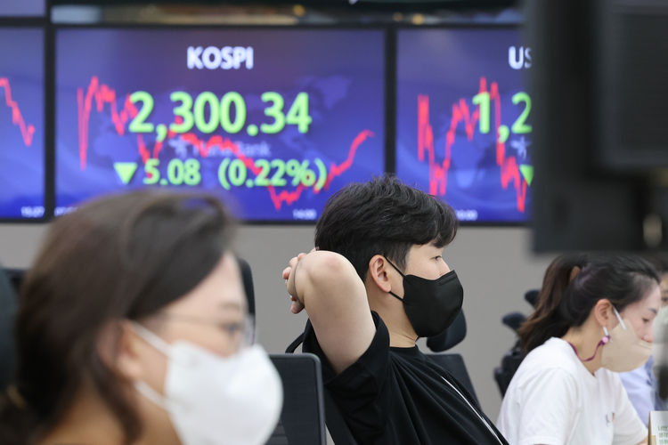 4일 한국거래소에 따르면 코스피는 전 거래일보다 5.08포인트(0.22%) 내린 2,300.34에 장을 마쳤다. 종가 기준으로 지난 1일(2,305.42)에 이어 2거래일째 연저점을 경신했으며, 2020년 11월 2일(2,300.16) 이후 1년 8개월여만의 최저치를 기록했다.