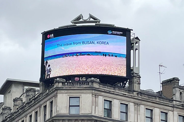 LG전자는 올 초 미국 뉴욕 타임스스퀘어와 영국 런던 피카딜리광장 등 세계 유수의 국제도시 한복판에 있는 회사 전광판에 부산의 아름다운 이미지와 ‘2030 부산세계박람회’ 유치 홍보영상을 상영했으며, 앞으로도 지속할 예정이다.