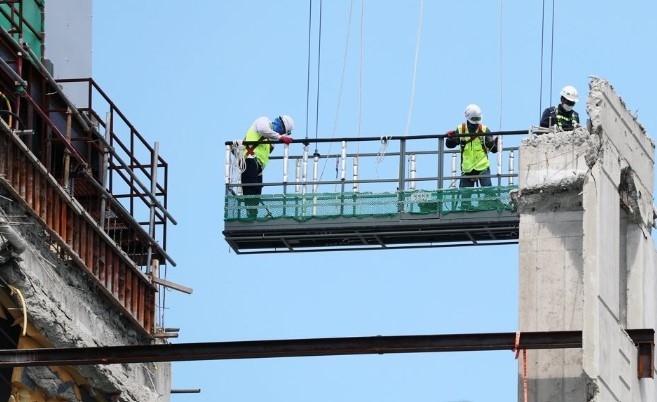 시공사인 HDC 현대산업개발 측은 이날 오후부터 철거 작업자 등을 투입해 붕괴 건물 동측 벽체를 잘라내는 작업을 개시.