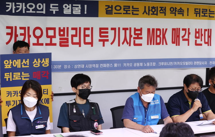 크루 유니언 측은 "카카오모빌리티는 대표적인 플랫폼기업으로서 수 백명의 본사직원과 아울러 수십 만 명의 대리운전기사 등 플랫폼노동자의 생계와 삶의 터전"이라며 MBK에 카카오모빌리티가 매각된다면 수많은 노동자의 생존이 위협받게 될 것"이라고 주장했다.