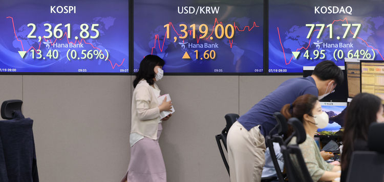 19일 오전 9시 22분 기준 코스피는 전날보다 10.01포인트(0.42%) 내린 2,365.24을 나타냈다. 지수는 전장보다 7.73포인트(0.33%) 낮은 2,367.52로 개장해 약세 흐름을 이어가고 있다.