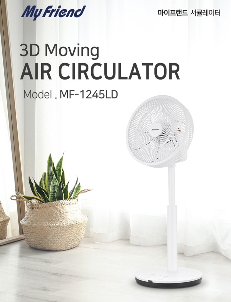 ‘마이프랜드 서큘레이터’는 7엽 날개로 균일하며 부드러운 바람으로 헤드가 상하, 좌우 자동으로 회전하는 것이 특징이다. 간편한 터치 센서 디스플레이와 리모컨으로 편리하게 이용 가능하다.