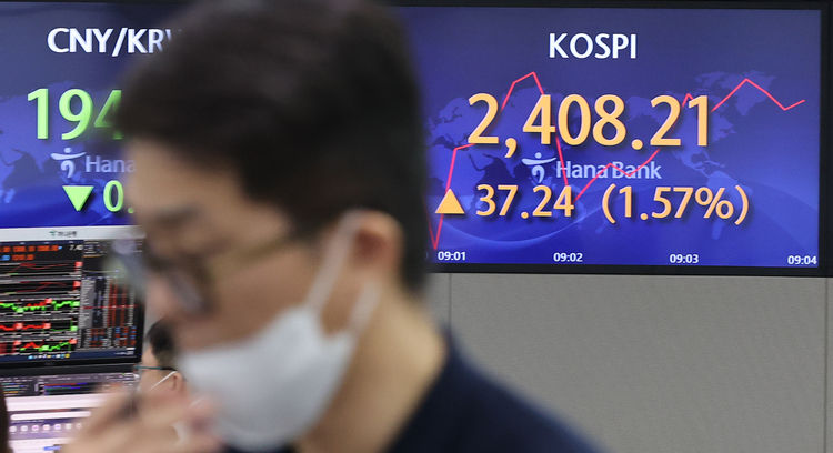 【 청년일보 】코스피가 외국인과 개인의 매수세에 힘입어 1%대 상승세를 보이고 있다. 지수는 장 중 2,400선을 회복하기도 했다.
