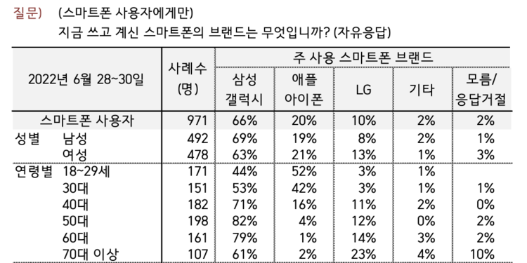 반면 해당 조사에서는 삼성전자가 젊은층에서 우세를 보이는 애플을 따라잡을 수 있는 실마리도 엿보인다.