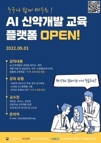 【 청년일보 】 한국제약바이오협회 인공지능신약개발지원센터는 인공지능(AI) 신약개발 온라인 교육 플랫폼 LAIDD 2.0 서비스를 1일부터 진행한다고 밝혔다.