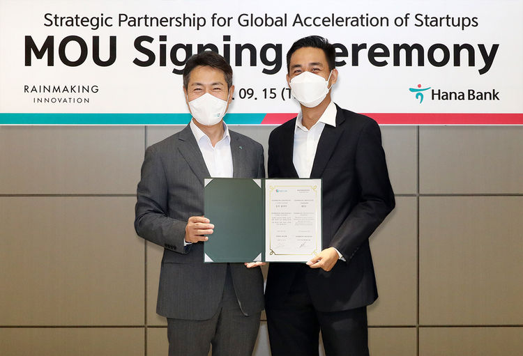 【 청년일보 】 하나은행은 세계적인 엑셀러레이팅 기관인 'RAINMAKING INNOVATION (SG) PTE. LTD.'와 글로벌 스타트업 육성을 위한 전략적 업무협약(MOU)을 체결했다고 16일 밝혔다.