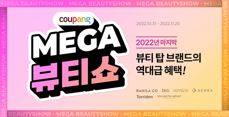 【 청년일보 】 쿠팡의 대표 뷰티 행사로 떠오른 '메가뷰티쇼'가 올해 세 번째이자 마지막 프로모션을 연다.