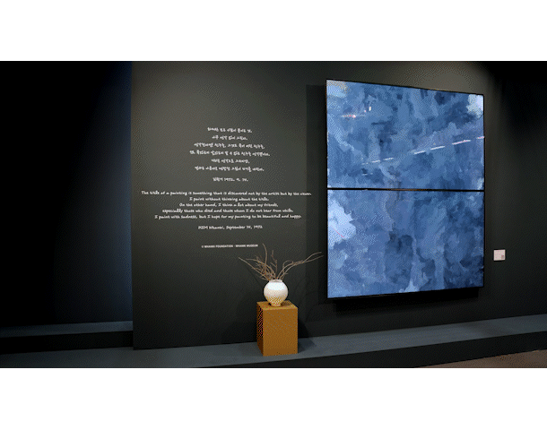 LG전자가 참가한 이번 전시에 故 김환기의 대표작 '어디서 무엇이 되어 다시 만나랴'를 비롯한 원화 12점과 함께 그의 작품을 새롭게 표현한 미디어아트 5점이 소개된다.