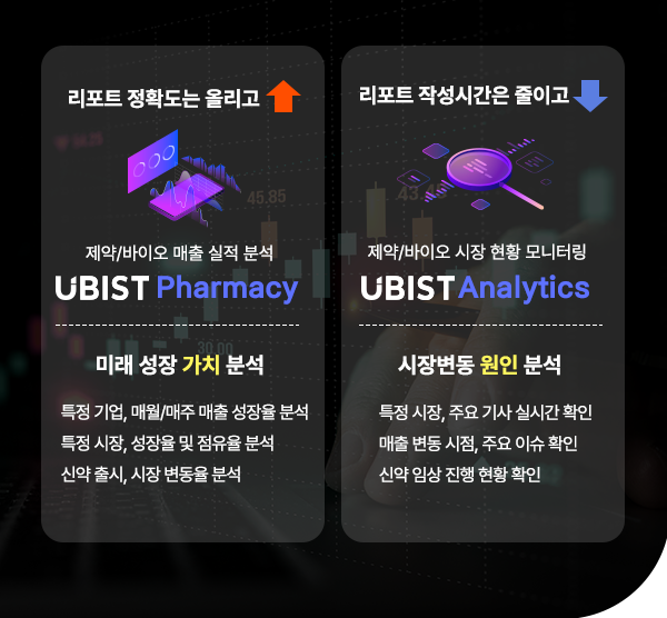 'UBIST Pharmacy'는 전국의 약국 패널 데이터를 수집, 분석, 가공해 원외처방시장에 대한 의약품 통계 데이터를 제공하는 솔루션이다.