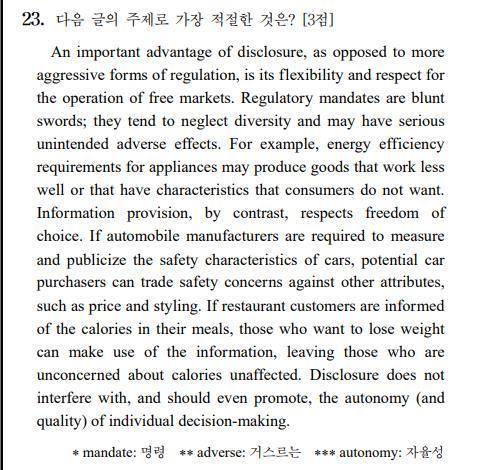 감사원에 따르면, 2023년 1월에 출간 예정이었던 EBS 수능 교재에는 고교 교사인 C씨가 2022년 3월에 출제한 문항인 'Too Much Information'(TMI)이라는 지문이 포함돼 있었다. 대학 교수인 D씨는 2022년 8월에 해당 EBS 교재의 감수를 하면서 TMI 지문을 접했고, 이후 2023년도 수능 영어 출제위원으로 활동하면서 이를 무단으로 사용해 수능 23번 문항으로 출제했다.