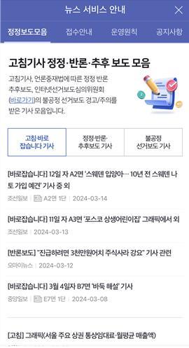 한편 뉴스혁신포럼은 외부 전문가 7명으로 구성된 독립기구로, '제22대 국회의원 선거 특별 페이지'의 지역 언론사 뉴스를 통해 각 지역 유권자에게 맞춤형 정보를 제공할 수 있도록 권고했다.