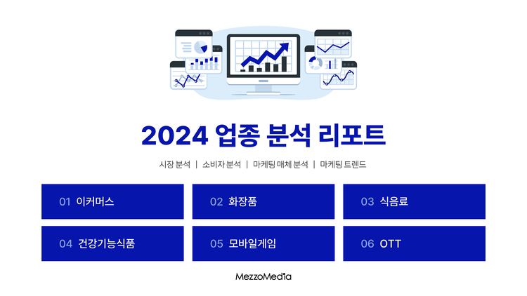 CJ ENM의 No.1 통합 디지털 마케팅 기업 메조미디어는 업종별 시장·소비자·매체·트렌드를 분석한 '2024 업종 분석 리포트' 6종을 발행했다고 26일 밝혔다.