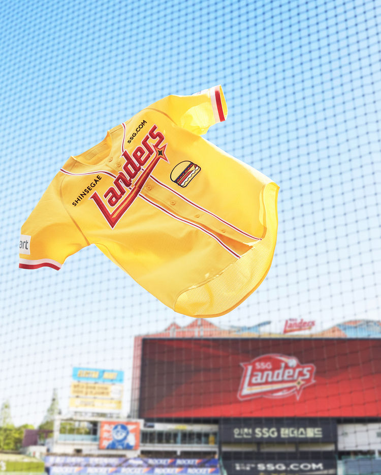노브랜드 버거를 상징하는 노란색과 대표 메뉴 NBB 시그니처 버거가 디자인 요소로 활용된 스페셜 유니폼으로 SSG랜더스 선수들은 NBB DAY 기간 동안 해당 유니폼을 착용하고 경기에 나선다.
