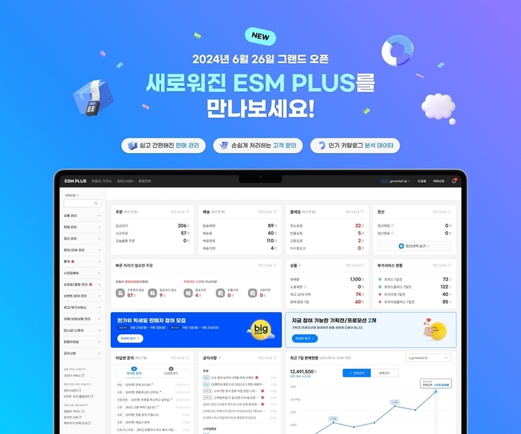 ESM PLUS는 G마켓, 옥션 입점 셀러가 상품 등록 및 마케팅, 고객 문의 처리를 위해 이용하는 내부 시스템이다. 이번 오픈에 앞서 지난 3월, 일부 서비스를 개편한 버전인 ‘ESM PLUS 베타 서비스’를 선공개한 바 있다.