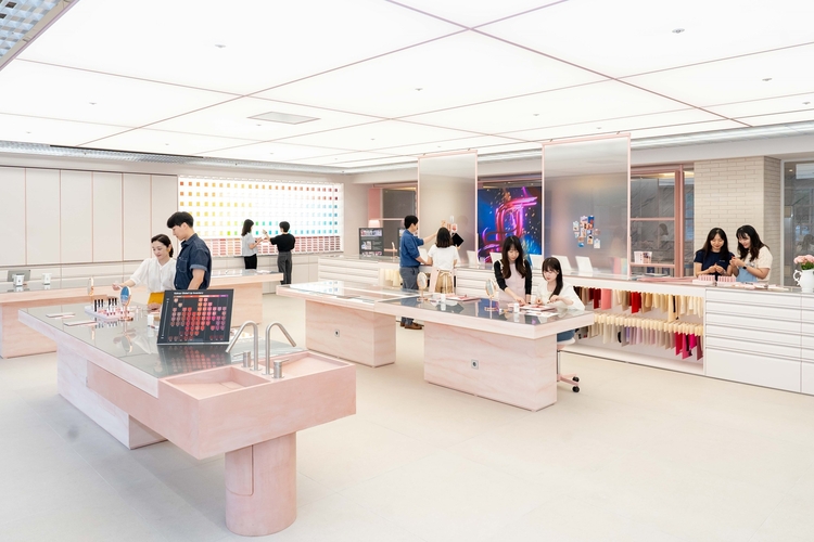 컬러 아뜰리에는 색을 선정하는 것이 감성적인 영역인 만큼 고객사들이 방문했을 때 새로운 색에 대한 아이디어가 샘솟도록 설계됐다. 입구로 들어오면 각종 사진과 옷감, 컬러칩을 모아둔 '무드보드(Mood Board)'를 보면서 컬러에 대한 영감을 받을 수 있다. 원하는 색을 그 자리에서 만들어보고, 직접 샘플을 촬영할 수 있는 공간으로 동선이 이어진다.