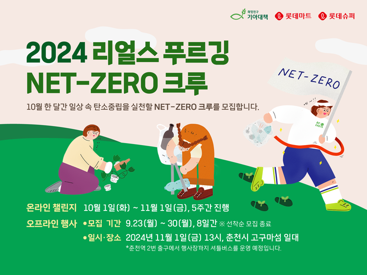 【 청년일보 】 롯데마트는 오는 10월 1일부터 11월 1일까지 한 달간 기후위기대응 캠페인을 진행하는 희망친구 기아대책과 함께 ‘2024 리얼스 푸르깅 Net-Zero 크루’를 모집해 온·오프라인 챌린지를 진행한다.