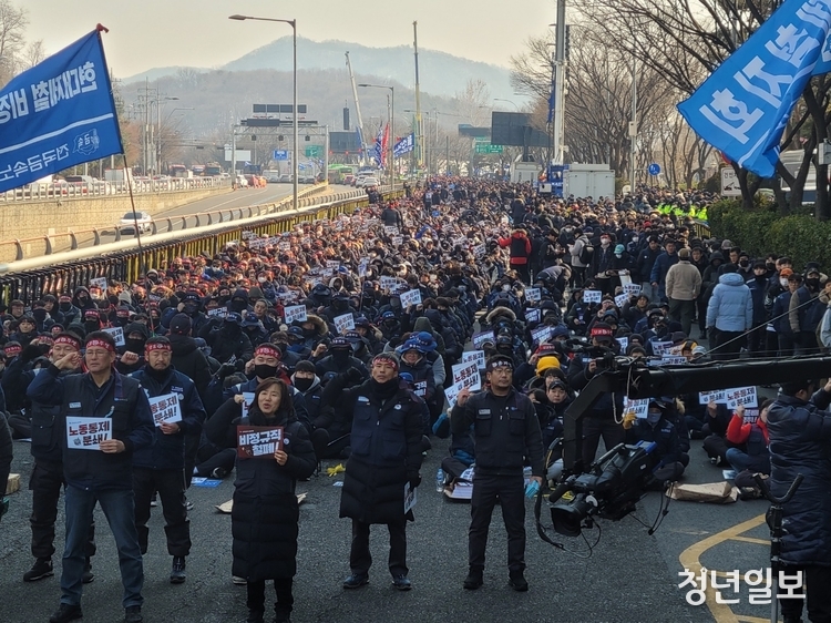 【 청년일보 】 11일 현대제철 노조가 전면파업을 선언하고 상경투쟁에 돌입했다. 이날 노조는 서울 서초구 양재동에 있는 현대차그룹 사옥 앞에서 결의대회를 진행했다.