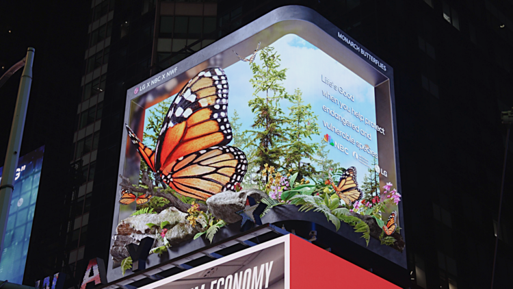 LG전자는 모나크 나비를 시작으로 다큐멘터리 시리즈에 등장하는 멸종위기종을 3D로 구현해 타임스스퀘어 전광판을 통해 순차 선보인다. 여기에 더해 미국 대학생들을 대상으로 다큐멘터리에 등장한 멸종위기종을 디지털로 재해석하는 공모전 원더박스(Wonderbox)도 NBC와 공동 개최할 예정이다.