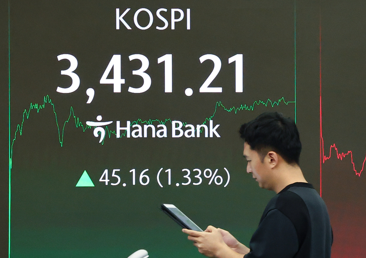 29일 한국거래소에 따르면 코스피는 전 거래일 대비 45.16포인트(1.33%) 오른 3431.21에 마감했다.