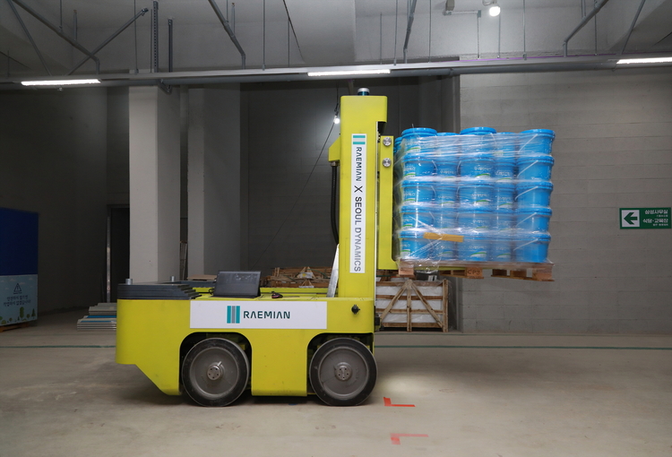 서울다이나믹스와 협력한 이 로봇들은 야간에 자재를 자동으로 운반해 주간 작업 공정 간섭을 최소화하고 효율을 높인다.