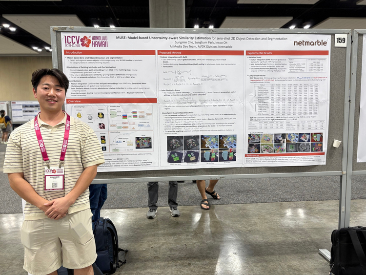이외에도 넷마블은 2025 국제 컴퓨터 비전 학회의 사물 인식 워크숍에서 논문 'MUSE(Model-based Uncertainty-aware Similarity Estimation)'를 발표했다. 이번 논문을 통해 별도의 추가 학습 없이 원하는 객체를 인식하고 분할할 수 있는 혁신적인 AI 연구 성과를 선보이며 학회의 주목을 받았다.