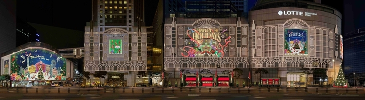 본점과 잠실점 외벽에는 모두 3만개의 LED 조명을 활용해 '롯데타운 크리스마스 파사드'를 만들었다. 크리스마스 선물을 열어보는 듯한 장식과 클래식한 조명으로 연출했다.