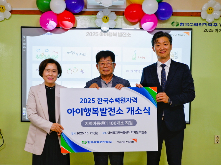 【 청년일보 】 한국수력원자력(이하 한수원)은 월드비전과 함께 '아이행복발전소' 사업의 일환으로 경주 아이뜰지역아동센터에 '드림 스페이스 디지털학습존' 개소식을 진행했다고 30일 밝혔다.