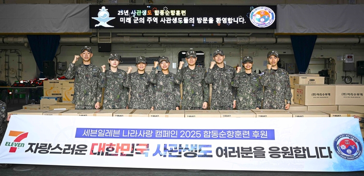 세븐일레븐은 2014년부터 10년 넘게 ‘나라사랑 캠페인’을 이어오며 육·해·공군 등 전국 주요 부대에 총 50여 차례, 약 5억6천만원 상당의 위문품을 전달해왔다. 올해만 해도 6월 호국보훈의달 위문품 후원에 이어, 이번 합동순항훈련 지원으로 청년 장교 후보생들에게도 감사를 전하게 됐다.