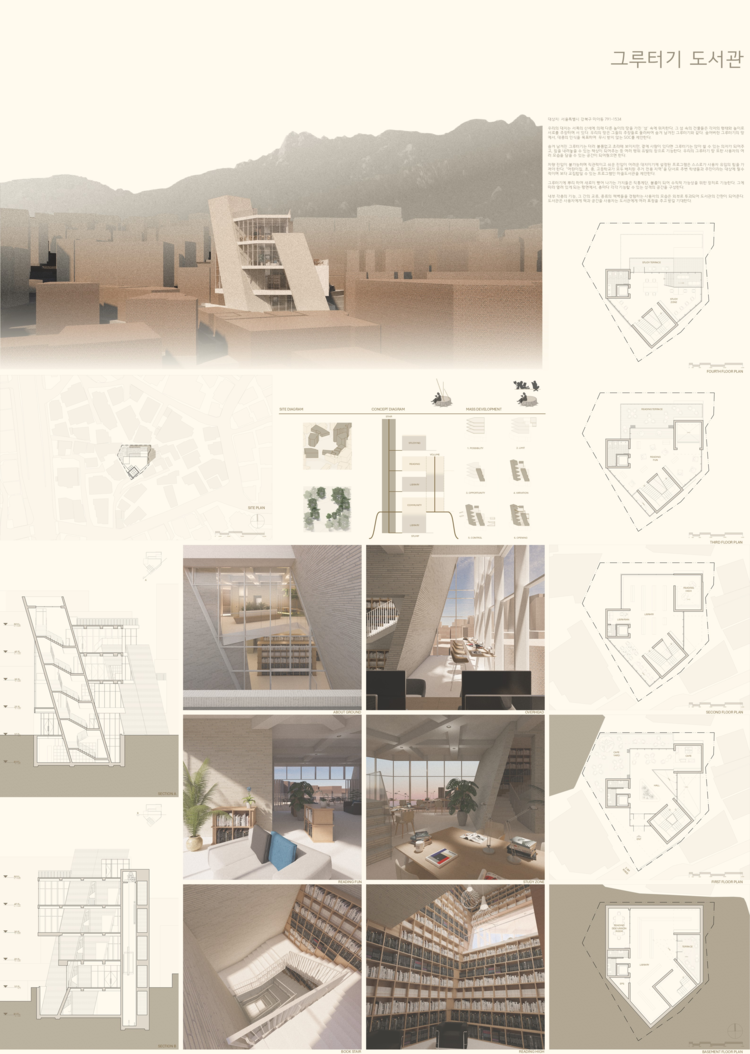 이 작품은 단순한 도서관을 넘어, 낮에는 열린 정원과 투명한 공간을 통해 주민과 소통하고 밤에는 사선 지붕에서 퍼지는 빛으로 골목을 비추는 '등대' 역할을 하도록 설계해 높은 평가를 받았다.