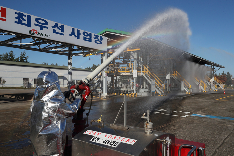 훈련은 비축유를 긴급 출하하던 중 지진이 발생해 입·출하대에서 기름이 유출되고 이로 인해 화재가 발생하는 상황을 가정하여 실전처럼 진행됐다.