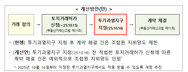 이 개선 방안은 2025년 10월 16일부터 지정된 투기과열지구에도 적용되도록 개정을 추진할 예정이다.
