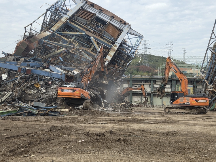 앞서 지난 6일 오후 2시께 울산화력발전소에서는 가로 25m, 세로 15.5m, 높이 63m 규모의 보일러 타워 5호기가 붕괴됐다.