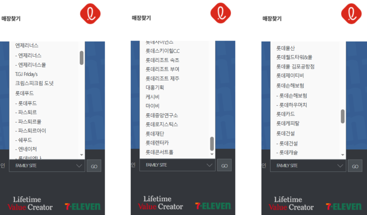 뿐만 아니다. 롯데 GRS는 보유 브랜드 중 하나인 엔제리너스로, 롯데카드의 교통카드 자회사인 로카모빌리티는 지난 2024년 6월 호주계 사모펀드인 맥쿼리자산운용에 약 4000억원에 매각, 당시 로카모빌리티의 브랜드로 사용됐던 캐시비와 마이비가 마치 계열사인 것처럼 소개되고 있는 상태다. 특히 마이비와 캐시비는 최근 브랜드 통합작업을 통해 이즐(ezl)이란 새 얼굴로 변경된 상태로, 롯데그룹과 전혀 무관한 곳이다.