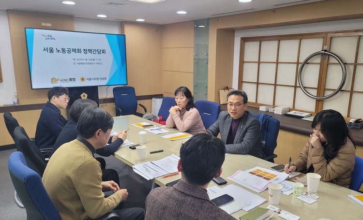 이날 간담회에는 이상훈 의원을 비롯해 신언직 노동공제연합 '풀빵' 학습원장, 김귀영 서울연구원 선임연구위원, 그리고 마포·노원·강동·서대문 등 각 지역 노동공제회 대표자들이 참석해 머리를 맞댔다.