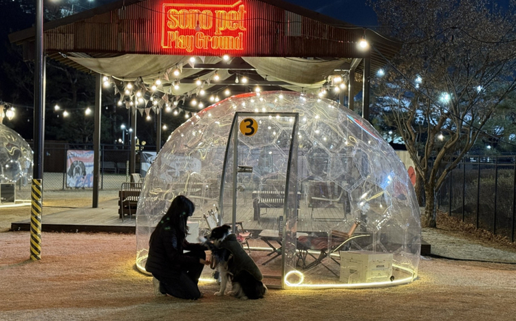 먼저 반려동물 전용 놀이터인 소노펫 플레이그라운드에서는 추운 날씨에도 반려동물과 함께 야외 풍경을 즐기며 따뜻하게 쉴 수 있는 공간인 ‘윈터 돔 빌리지’를 새롭게 오픈했다.