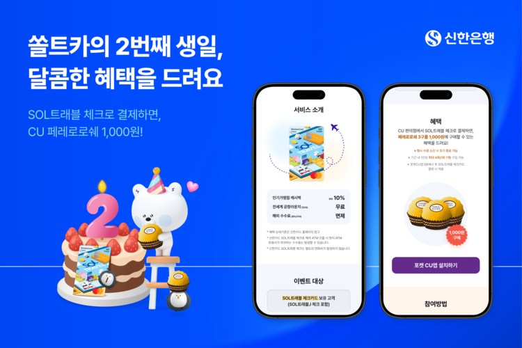 【 청년일보 】 신한은행은 SOL트래블 체크카드 출시 2주년을 맞아 오는 2월 1일부터 13일까지 CU편의점과 함께 고객 감사 이벤트를 진행한다고 30일 밝혔다.