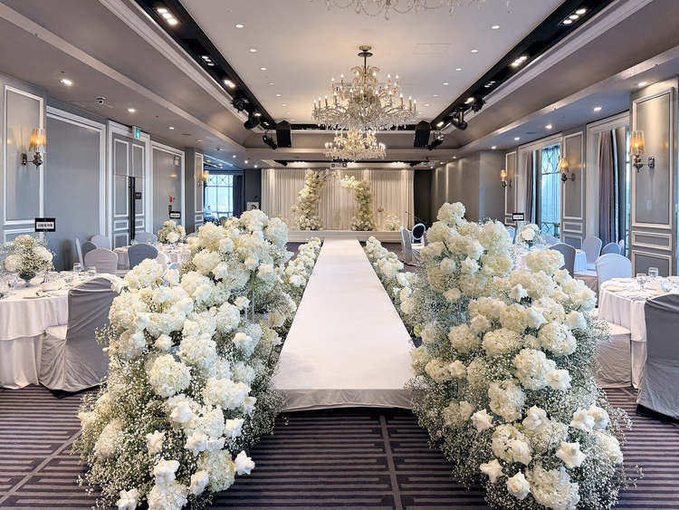 이번 행사는 메인 웨딩홀인 15층 '센트럴파크'에서 진행되며, 화이트와 그레이 컬러를 메인 콘셉트로 신랑 신부가 중심이 될 수 있는 공간으로 연출했다. 지난해 11월 하우스 웨딩 감성으로 리뉴얼된 센트럴파크는 전면 통유리를 통해 개방감을 갖췄다.