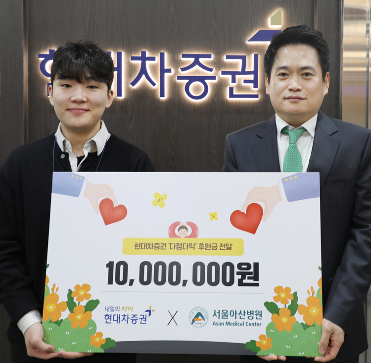 현대차증권 내 ‘투자 고수’들의 따뜻한 행보도 이어졌다. 최근 ‘2025 하반기 한경 스타워즈’(실전 투자대회)에서 우승을 차지한 현대차증권 ‘다정다익’팀이 이달 2일 우승 상금 1천만원 전액을 서울아산병원 어린이병동에 기부했다.