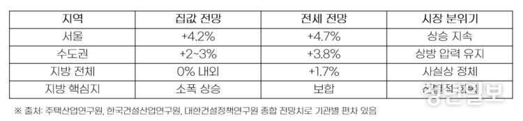 공급 감소는 전세 시장 불안으로 직결됐다. 2026년 서울 전세 상승률 전망치는 4.7%로 매매 가격 상승률 예측치인 4.2%를 상회한다. 전세 가격이 매매 가격보다 빠르게 오르는 역전 현상이 심화되는 추세다.