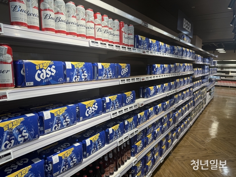 구체적으로 주류 코너에서 맥주 상품은 OB맥주의 '카스'가 전체 매대의 상당 부분을 차지하고 있었고, 해외 맥주 브랜드로는 '버드와이저' 단 한 개의 브랜드만 소수 비치돼 있었다.