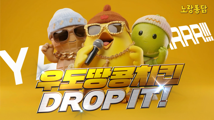 영상에는 제주 특산물인 우도 땅콩과 청귤을 의인화한 신규 캐릭터가 등장한다. 이들이 노랑통닭 마스코트 '노랑이'와 함께 호흡을 맞추며 '우도 땅콩 치킨'을 유쾌하게 소개한다.