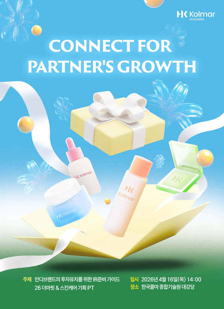 세미나는 이달 16일 서울 서초구 소재 한국콜마 종합기술원에서 진행된다. 콜마홀딩스는 '인디브랜드 IR 준비 가이드'와 '스킨케어∙더마 화장품 트렌드 및 신기술'을 주제로 강연을 제공할 예정이다.
