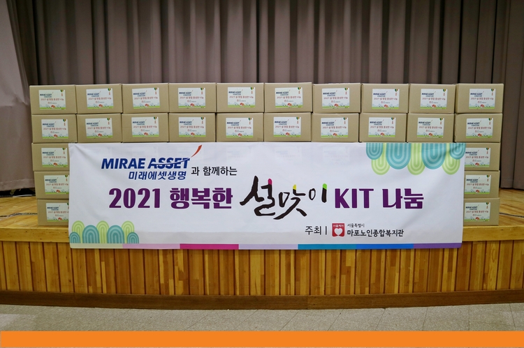 【 청년일보 】 미래에셋생명은 지난 8일 설 명절을 앞두고 한파와 신종 코로나바이러스 감염증(코로나19) 영향으로 생활에 어려움을 겪고 있는 저소득 노인들에게 '설 명절 선물 키트' 200개와 함께 따뜻한 마음을 전달했다고 9일 밝혔다.