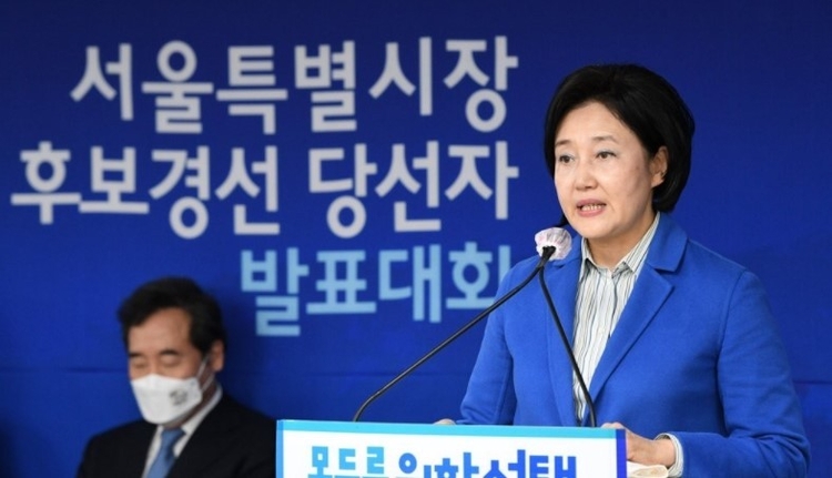 ![더불어민주당 서울시장 후보로 선출된 박영선 전 중소벤처기업부 장관이 1일 서울 여의도 당사에서 수락연설을 하고 있다. [사진=연합뉴스]](http://www.youthdaily.co.kr/data/photos/20210309/art_1614592036513_677fb2.jpg)